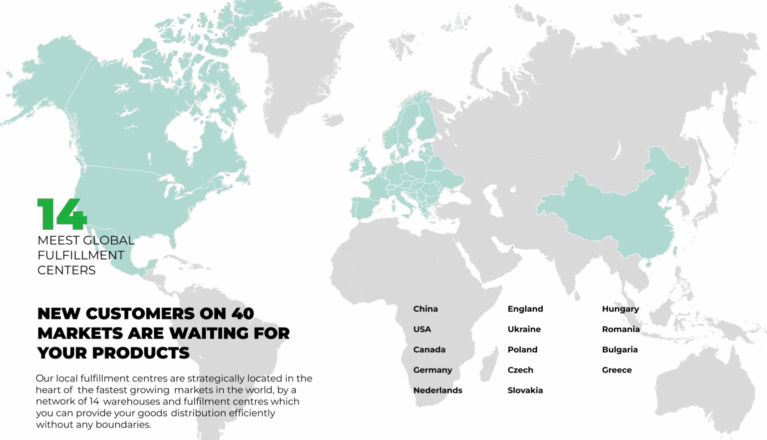 Víme, jak důležitá je efektivní logistika spotřebního zboží pro budování značky. Ve společnosti Meest nabízíme komplexní služby v oblasti plnění internetových objednávek ve 12 zemích Evropy, Ameriky a Asie, abyste mohli rozvíjet své podnikání a soustředit se na své hlavní činnosti! Logistiku nechte na Meest!